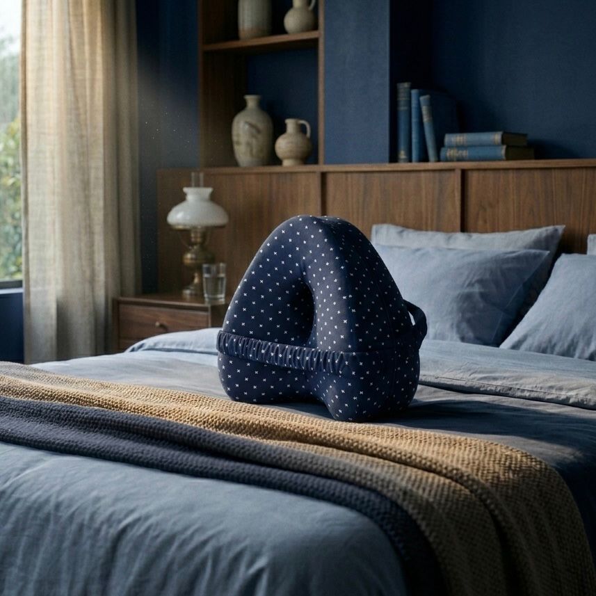 It keeps your legs properly aligned during sleep to reduce pressure on your lower back and hips.